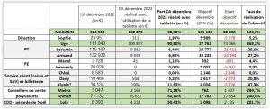 En décembre 2022, pour l’ensemble du magasin, l’objectif d’utilisation des tablettes (25 % du CA) a été dépassé. Le taux de réalisation de l’objectif est de 123,6 %.