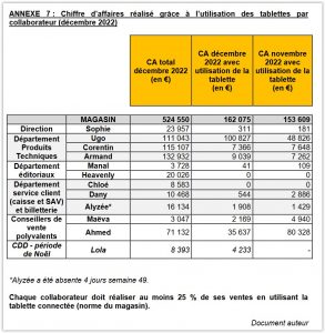 Sophie Salamens, directrice de la FNAC de Bergerac, vous demande de l’assister au sujet de l’usage des tablettes par les vendeurs.